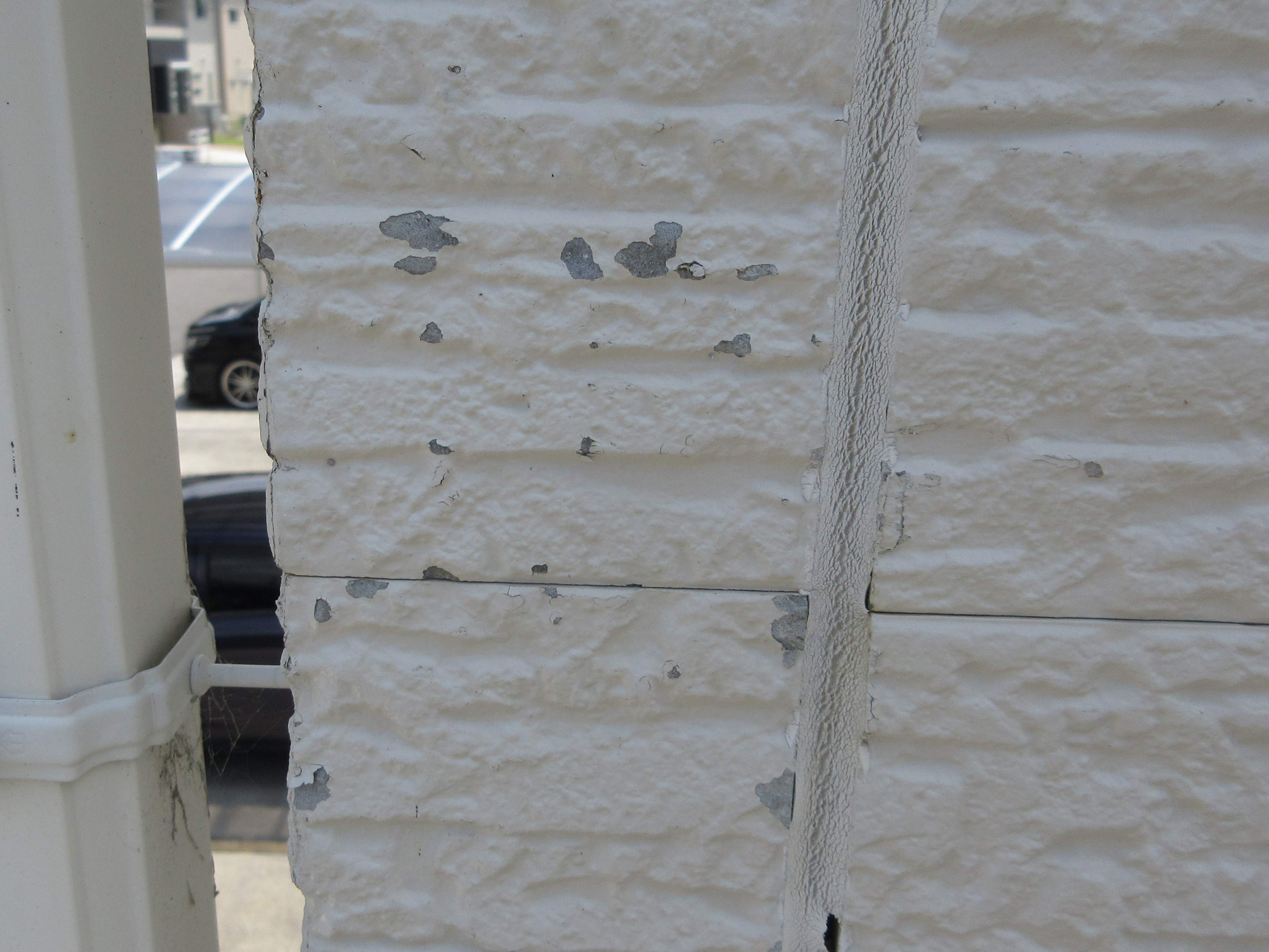 見た目はまだキレイなのに、細かいシーリングの割れやサイディング表面の劣化が進んでいました。