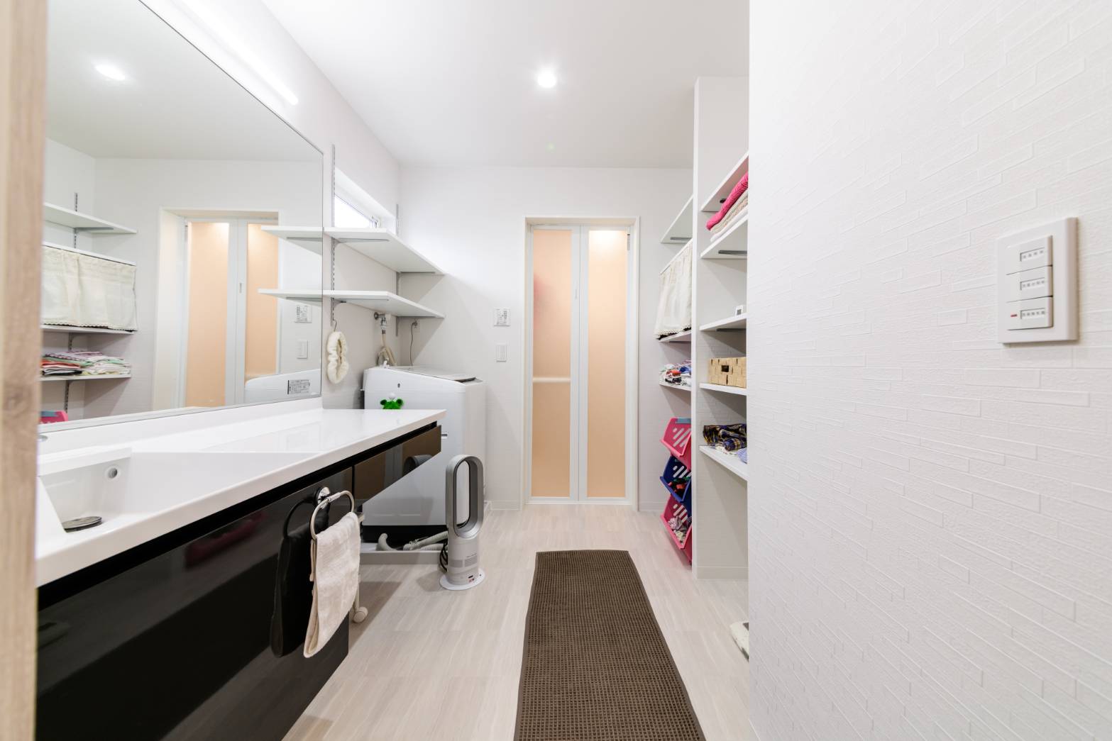 続いて洗面の紹介です。我が家は2Fリビングなのでメインの洗面は大きく収納量もたっぷりとって配置し、玄関から入ってすぐの1Fにはミニ洗面をつくりました。外から帰ったらリビングに上がる前に手洗いとうがいをしています。
