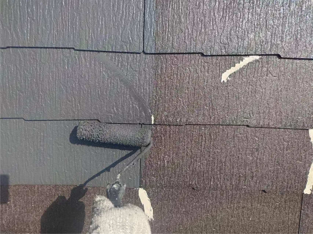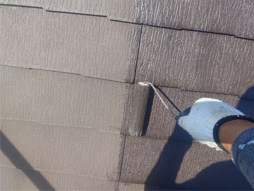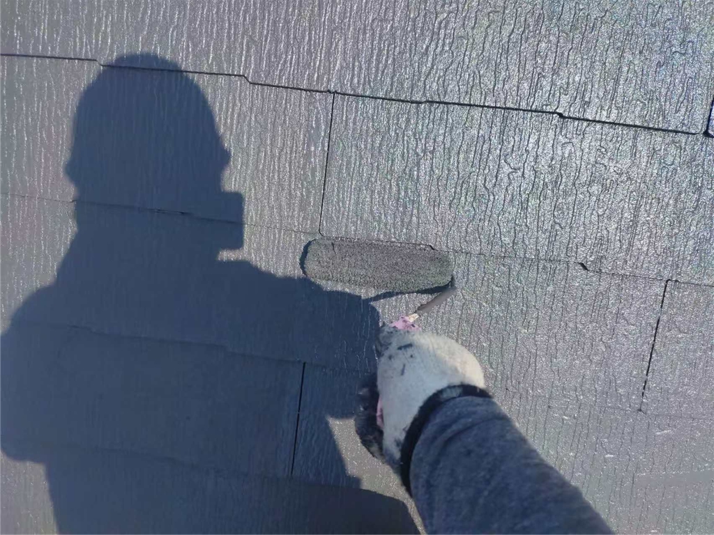 下地を整えることで、耐久性の高い塗膜を実現します。屋根の状態を確認しながら、丁寧に塗装を行っています。