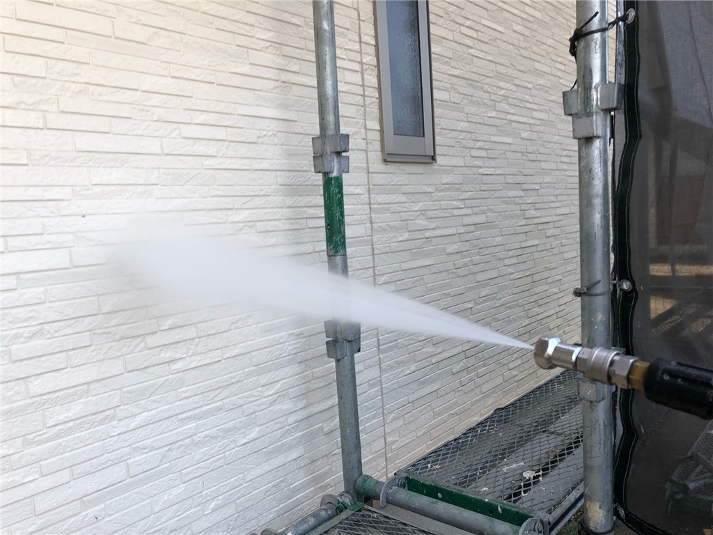 塗装前の大切な工程になります。丁寧に洗浄することで、古い塗膜や汚れをしっかり除去し、塗装の密着を高めます。