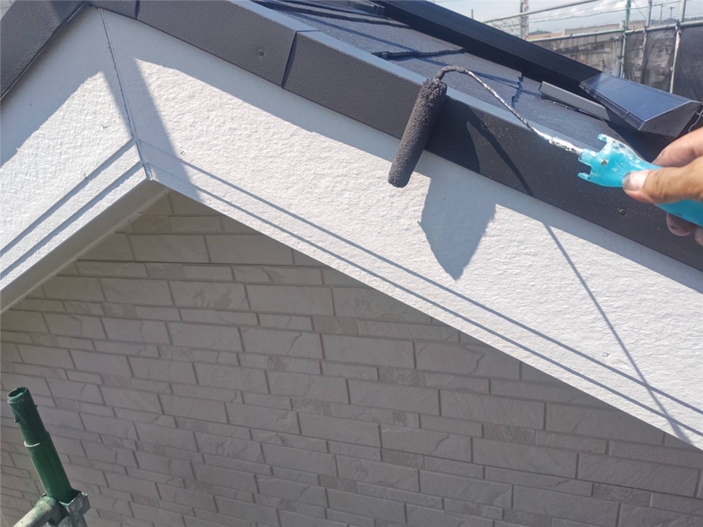 屋根の上面はもちろん、軒下の隅々まで丁寧に塗装を行います。控えめな色味でも、塗装により清潔感と艶が復活し、建物全体が明るい印象に。