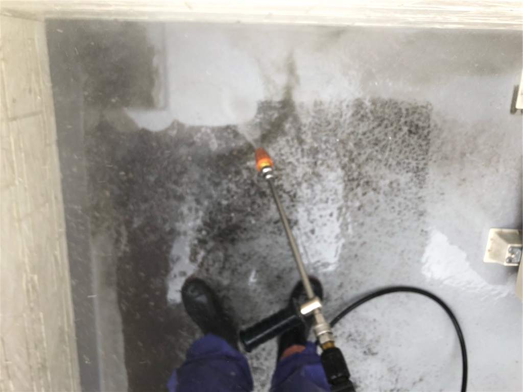 水圧を調整しながら、素材を傷めずに汚れを落としておきます。