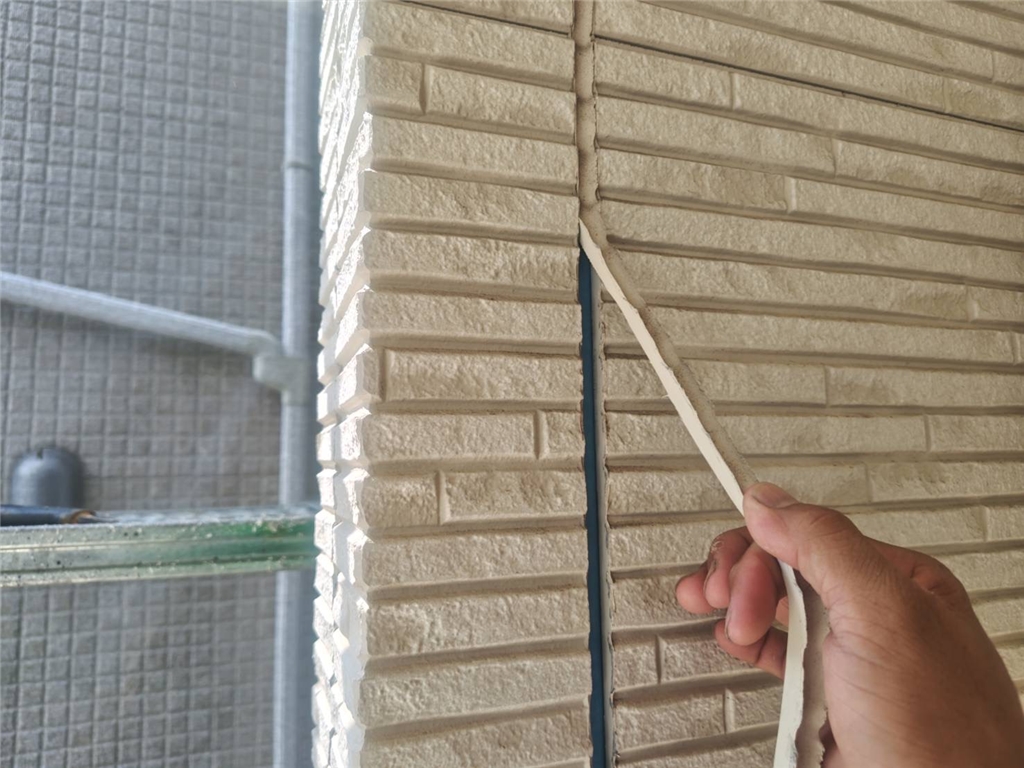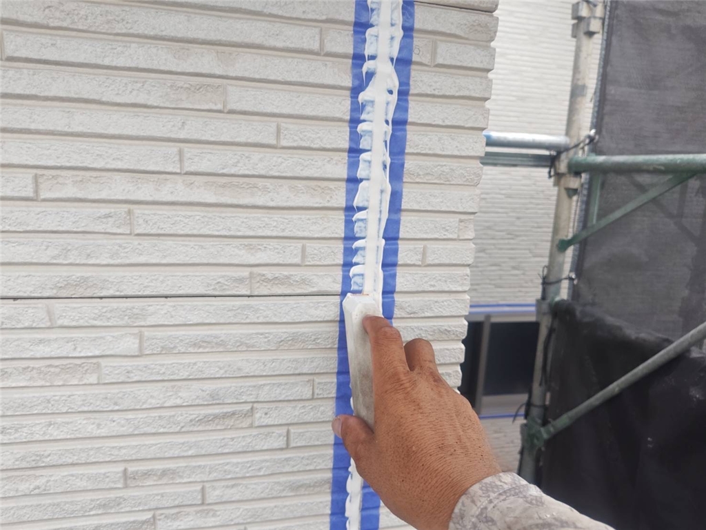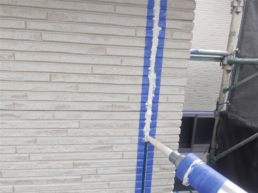 既存の古いシーリングを完全に除去し、新たに充填していきます。隙間や凹凸にも丁寧に対応し、耐久性と美観の両立を図っています。