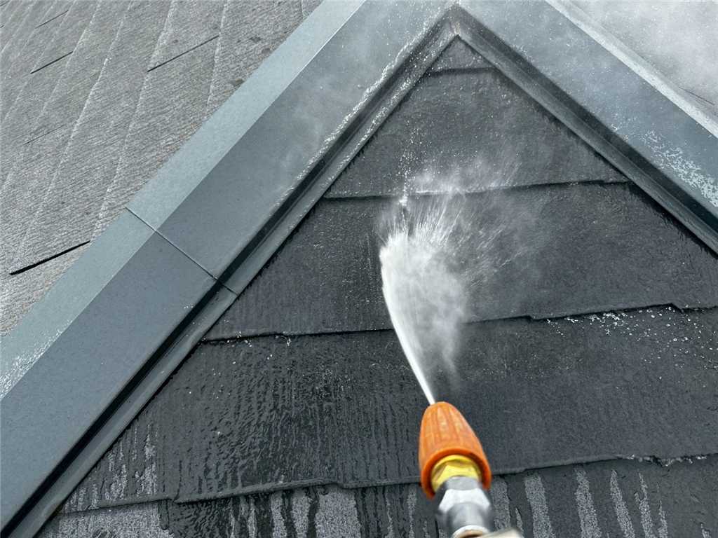 屋根表面をクリーニングし、塗装後の美しい発色を引き出します。