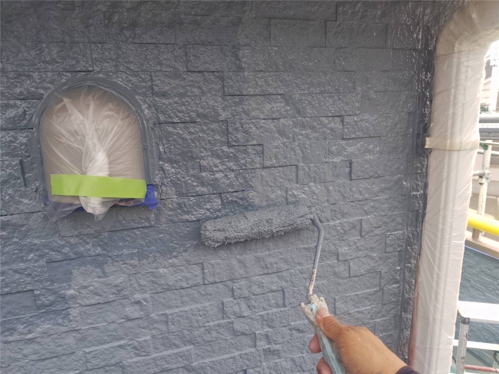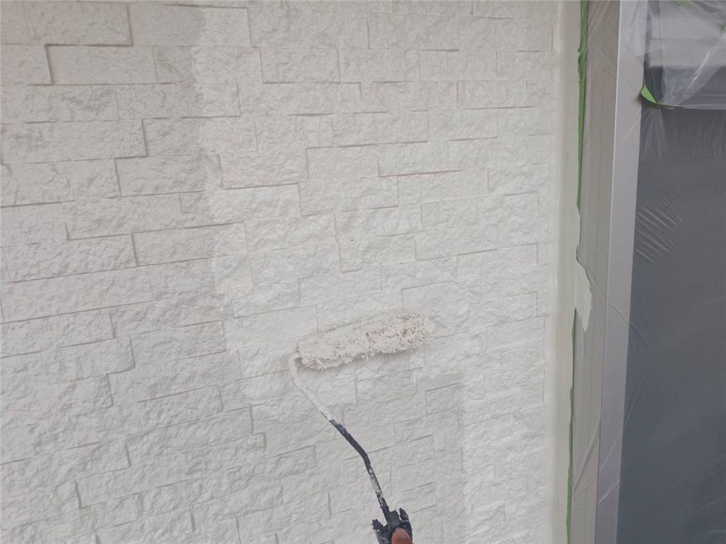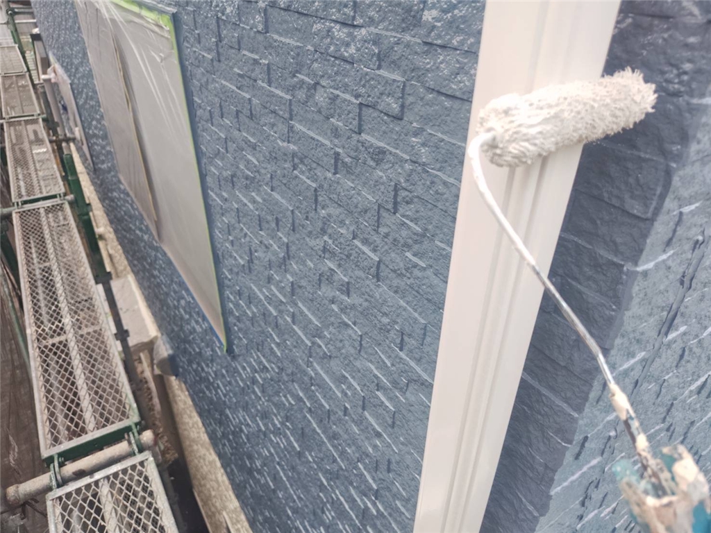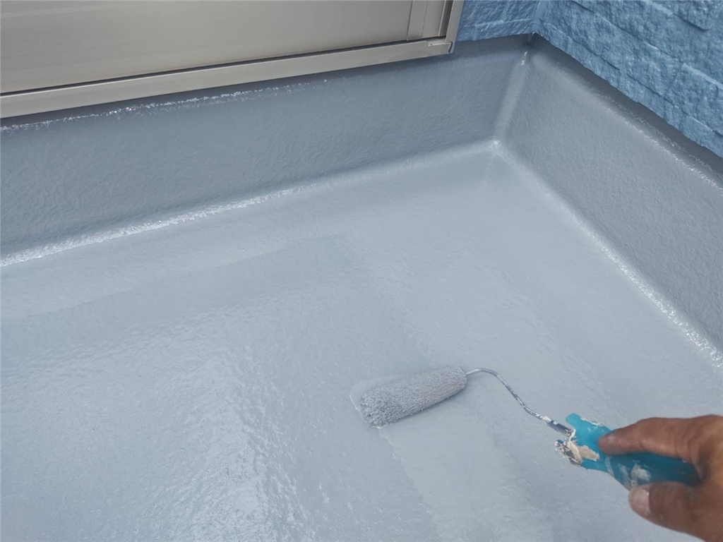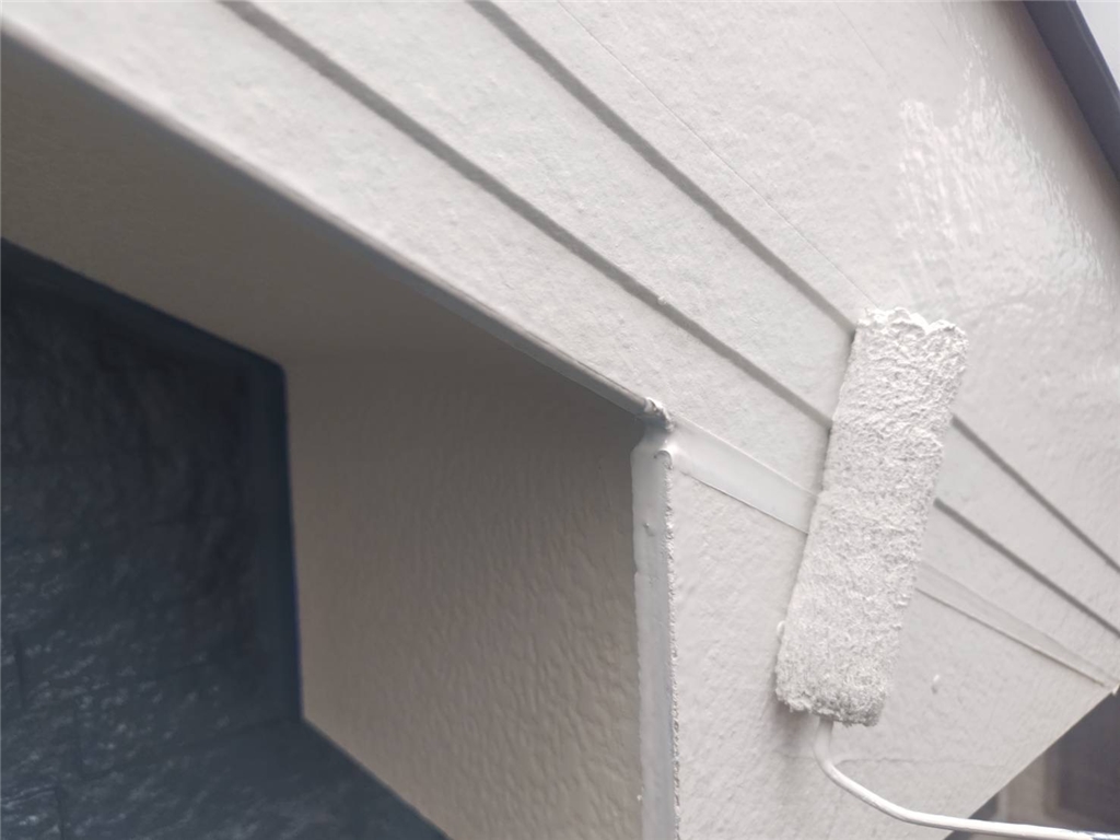 破風板・樋・バルコニーも塗り残しなく塗装し、統一感のある仕上がりに。凹凸箇所にも塗漏れの無いように丁寧に仕上げていきます。