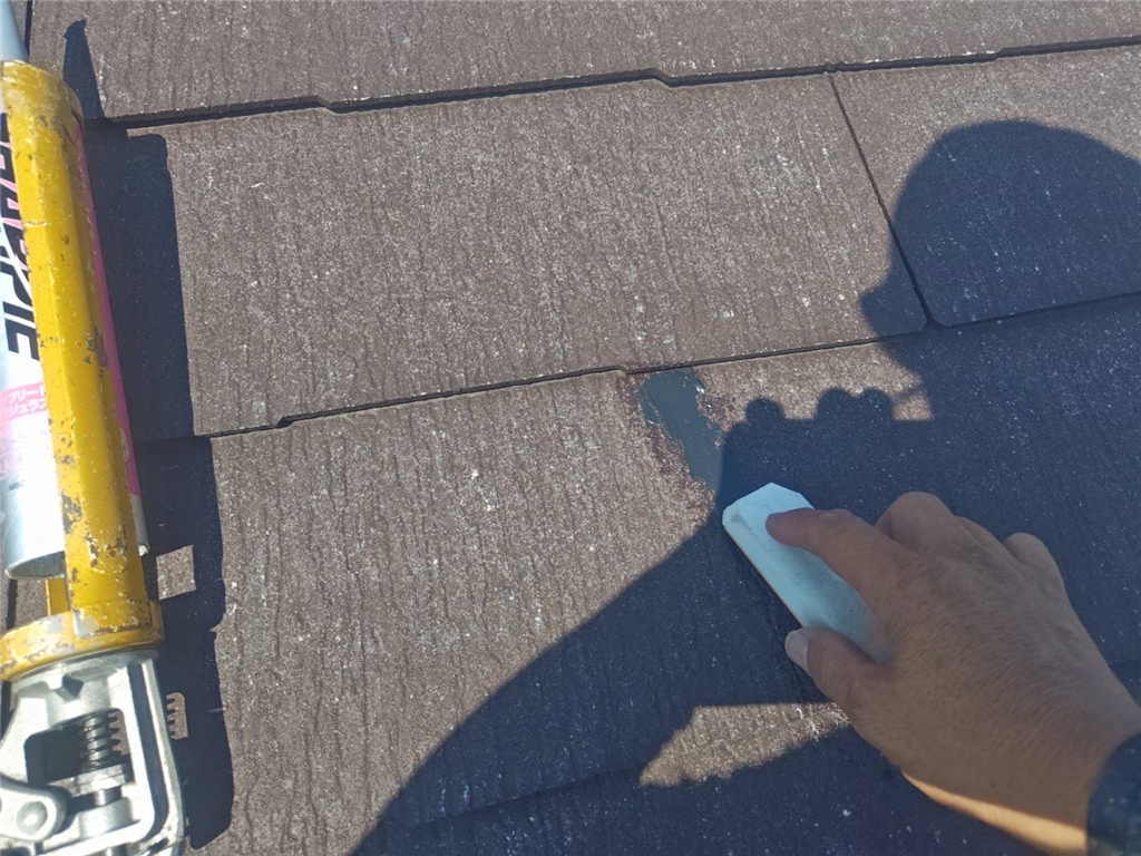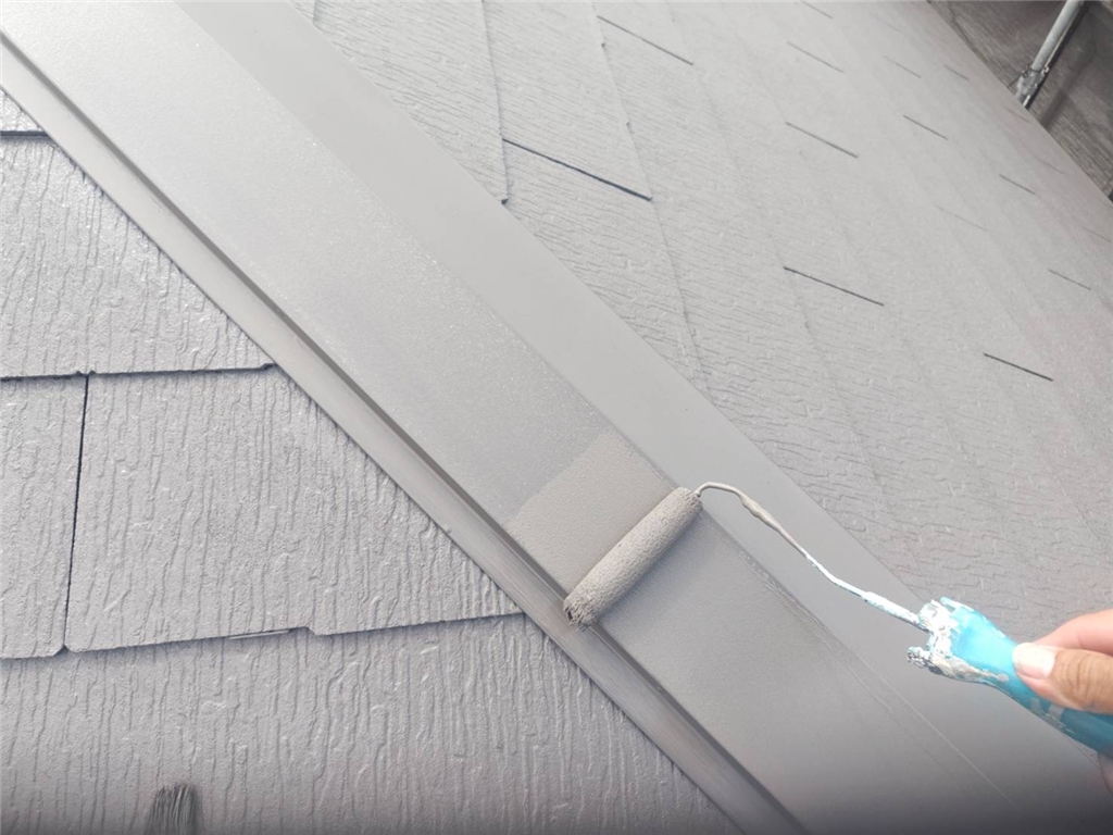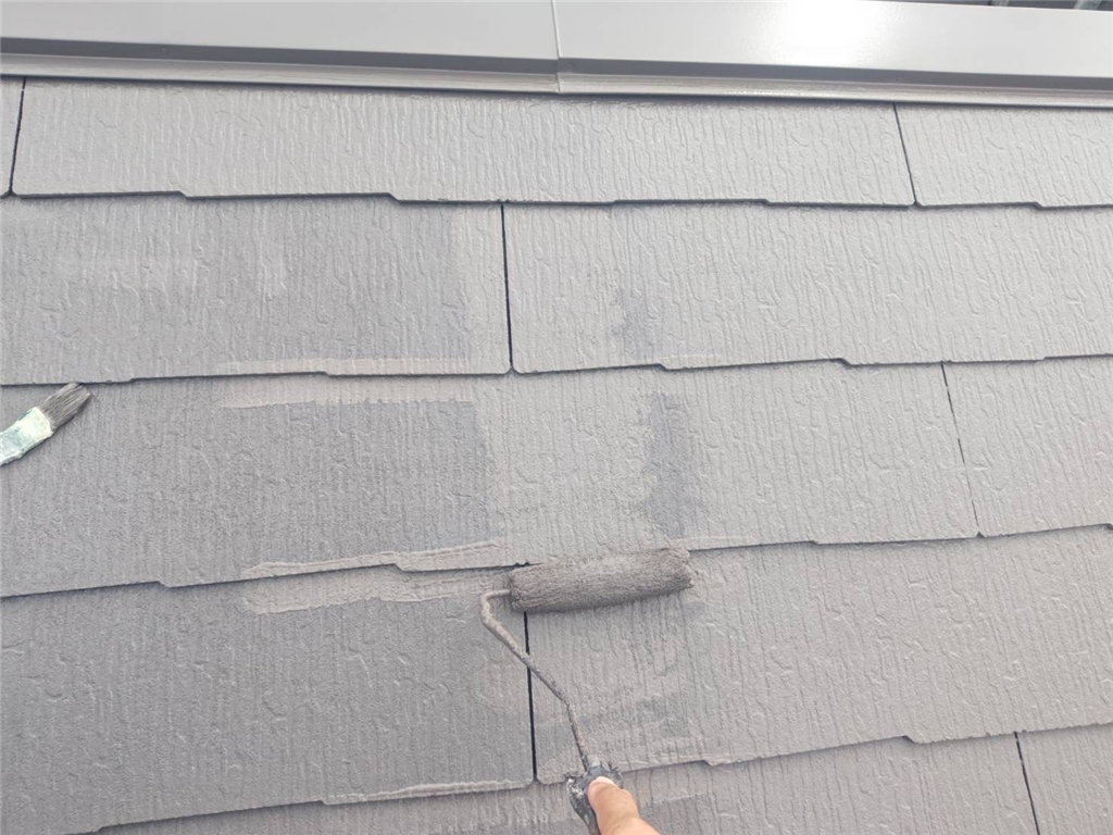 屋根の小さなひびも見逃さず、下地処理を行ってから塗装しています。