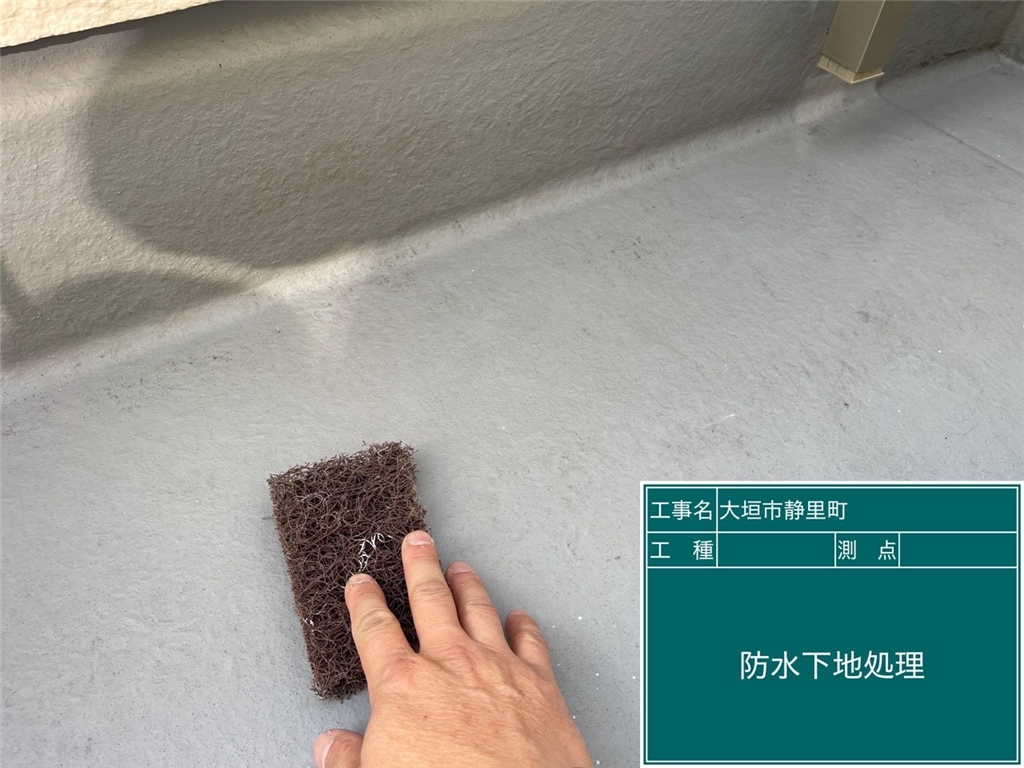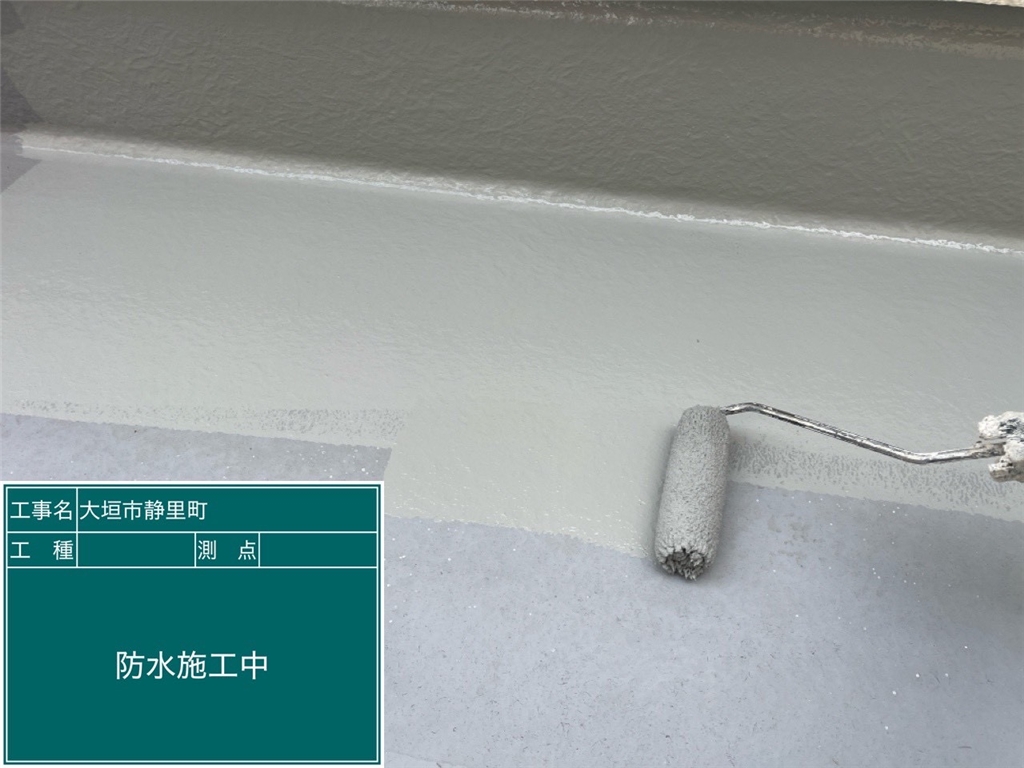 ベランダの床面も、専用の塗料で防水工事を行いました。 下地処理を施した後、ローラーで滑らかにコーティングすることで、高い撥水性能を取り戻します。目に見えない微細なひび割れからの浸水を防ぎ、お住まいの構造体を湿気から守る、非常に重要なメンテナンスです。